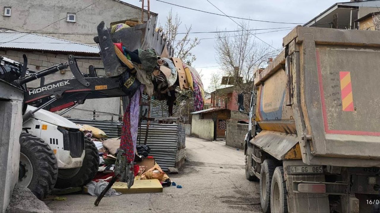Behçet DALMAZ/VAN, (DHA)- VAN'ın Tuşba ilçesinde 'kötü koku' ihbarı yapılan tek katlı müstakil evden 10 ton çöp çıkartıldı.