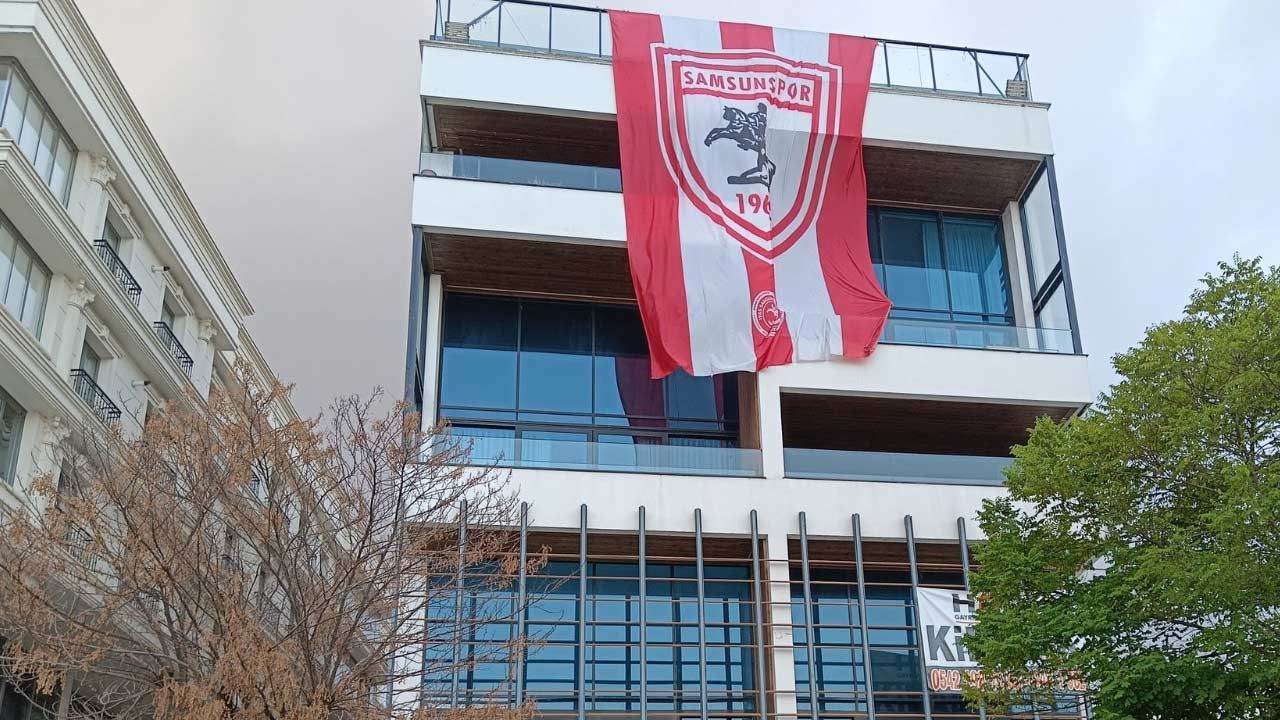 Baran Loft Hasan Sandıkçı Yalı Evleri'nde oturan Samsunsporlu vatandaşlar, balkonlarına dev Samsunspor bayrağı asarak limanda toplanan taraftarlara destek verdi.