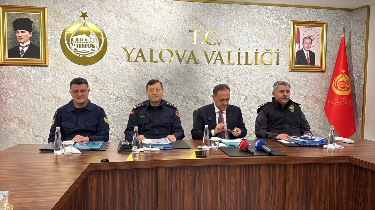 Yalova Valisi Ahmet Hamdi Usta başkanlığında Valilik binasında '2024-2025 Yılı Asayiş Değerlendirme Toplantısı' yapıldı. Toplantıya, İl Jandarma Komutanı Albay Ercan Altın, İl Emniyet Müdürü Yılmaz Delen, Yalova Sahil Güvenlik Komutanı Astsubay Eren Deneri ve basın mensupları katıldı. Kent genelinde 2024-2025 yılında gerçekleştirilen operasyonlara yönelik bilgilendirmede bulunan Vali Usta, asayiş suçları kapsamında kişilere karşı işlenen suçların aydınlatılma oranının 2024 yılında yüzde 98 olarak kaydedildiğini, başarı oranının 2025 yılında ise yüzde 99'a ulaştığını belirterek, 'Hapis cezasına ve ifadesine yönelik aranması olan şahısların yakalanması için yapılan çalışmalarda 2025 yılında 2 bin 939 kişi yakalanmıştır. 2025 yılında hapis cezası olanların yakalanmalarında ise yapılan çalışmalarda 5 yıla kadar hüküm giymiş 719 şahıs, 5-10 yıl arası hüküm giymiş 108 şahıs, 10 yıl üstü hüküm giymiş 53 şahıs olmak üzere toplam 880 şahıs yakalanmıştır. 2025 yılında ifadeye yönelik toplam 2 bin 59 şahıs yakalanmıştır. 'Kasten öldürme' suçundan 1 adet projeli dosya hazırlanmış olup, bu projeli dosya neticesinde 5 şahıs yakalanmış, yakalanan şahıslardan 1 şahıs sevk edildikleri adli makamlarca tutuklanmış, 1 şahıs adli kontrol şartı ile serbest bırakılmış, 3 şahıs ise savcılık makamınca serbest bırakılmıştır. İl Jandarma Komutanlığımızca toplam 7 adet projeli dosya hazırlanmış olup, bu projeli dosyalar neticesinde yakalanan 7 şahıstan 3 şahıs tutuklanmış, 2 şahıs adli kontrol şartı ile 2 şahıs şubeden serbest bırakılmıştır' diye konuştu.