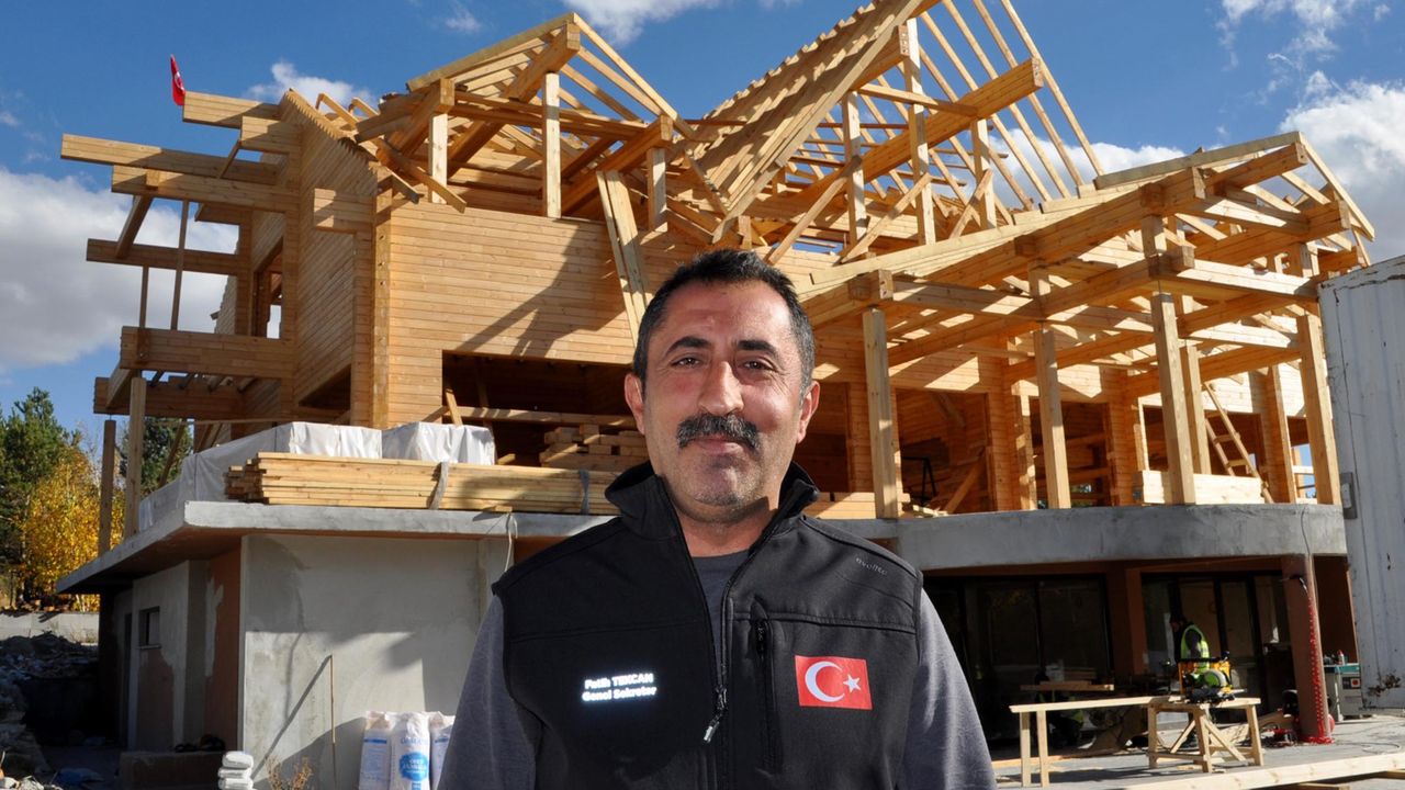 Volkan KARABAĞ/KARS, (DHA)- KARS'ın Arpaçay ilçesinde Çıldır Gölü sahiline 2017 yılında Finlandiya'dan getirilerek yaptırılan ve 2 yıl önce çıkan yangında yanan 'kütük ev'in yerine yenisi inşa ediliyor. Rusya'dan getirilen özel ağaçlarla yapımına başlanan 'kütük ev' ile doğa turizminin geliştirilmesi amaçlanıyor.
