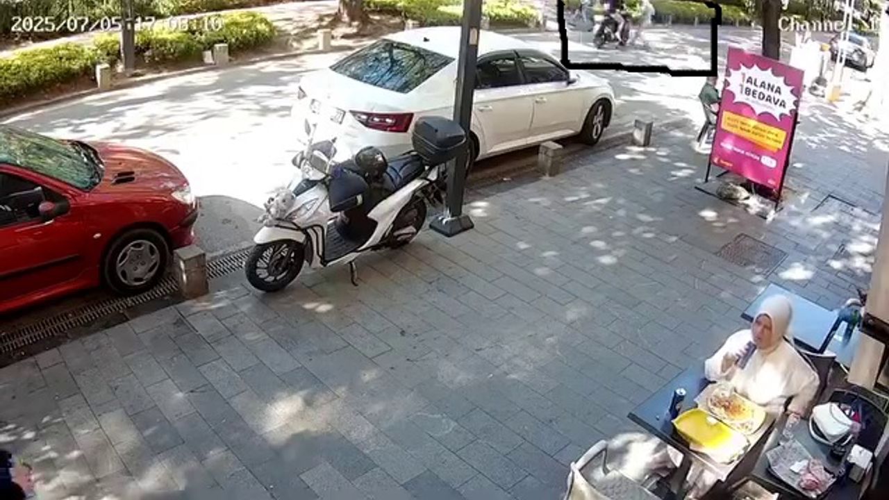 Kaza anı güvenlik kamerası tarafından kaydedildi. Görüntüde; motosikletlinin yaya geçinde kadına çarpmasının ardından savrularak devrildiği görüldü. Kadın yaralanırken, motosikletten düşen sürücü ise hafif sıyrıklarla kazayı atlattı. Kazanın ardından çevredeki vatandaşların, ikilinin yardımına koştuğu anlar görüntüye yansıdı. (DHA)