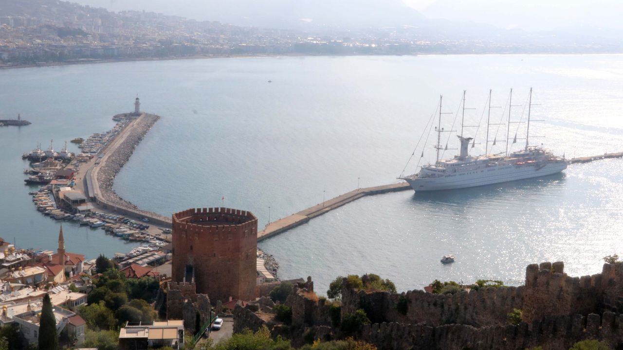 Fransa bayraklı 187 metre uzunluğunda, 20 metre genişliğindeki 'Club Med 2', sabah saatlerinde Alanya Limanı'na demirledi. Gemide çoğunluğu Fransa vatandaşı 258 turist ve 211 personel yer aldı. Gümrük işlemlerinin ardından turistler ilçe merkezini gezdi. Club Med 2, saat 18.00'de Antalya'nın Kaş ilçesine hareket edecek. (DHA)