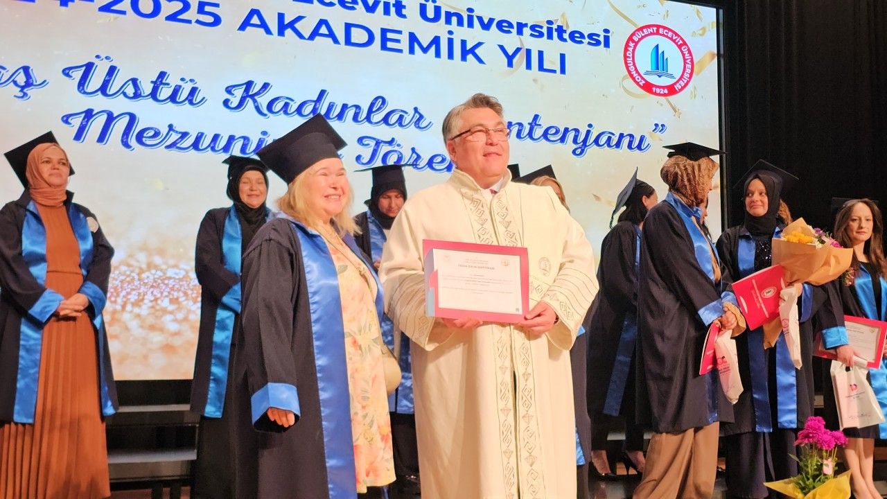 Rektör Prof. Dr. İsmail Hakkı Özölçer, programda yaptığı konuşmada, ailenin en önemli yapı taşının kadın olduğunu belirterek, “Burada sadece bir öğrenim sürecinin tamamlanışına şahitlik etmiyoruz. Bugün aynı zamanda hayatın her döneminde öğrenmenin, kendini geliştirmenin ve bir hedefe adanmışlığın ne kadar kutsal olduğunu bizlere gösteren cesur kadınların, mezuniyet töreninde buluşmanın kıvancını yaşıyoruz. Cumhurbaşkanımız Sayın Recep Tayyip Erdoğan’ın 2025 yılını Aile Yılı ilan etmesiyle birlikte aile kurumunun güçlendirilmesi yönünde atılan bu anlamlı adım, aslında tam da bugün burada gördüğümüz büyük emeğin özüdür. Çünkü aileyi ayakta tutan, yürekle taşıyan ve geleceğe hazırlayan en güçlü yapı taşı kadındır. Bugün burada o gücün en güzel örneği olan 34 yaş üstü kadınlar kontenjanı ile üniversite sıralarına adım atmış kıymetli öğrencilerimizin mezuniyetini kutluyoruz” dedi.