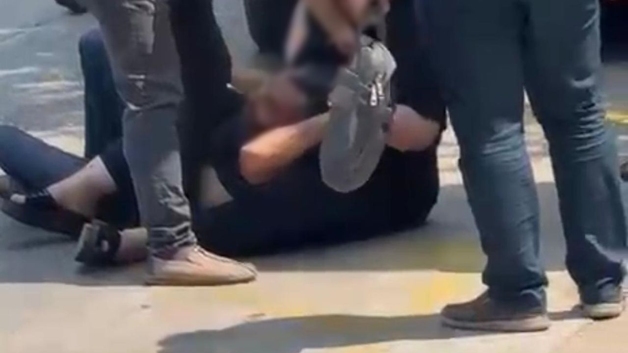 Yiğithan HÜYÜK/BURSA, (DHA)- BURSA'da bir kadın yolda karşılaştığı eski eşini, 'Ailemi dolandırdın' diyerek cadde ortasında yere yatırıp, darbetti. O anlar, çevredekiler tarafından cep telefonuyla görüntülendi.