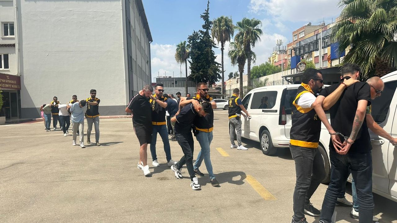 Seyhan İlçe Emniyet Müdürlüğü ekipleri, ihbar üzerine eve operasyon düzenledi. Aramalarda 2 ruhsatsız tabanca, 1 çelik yelek, 2 dizüstü bilgisayar ve çok sayıda cep telefonu ele geçirildi. Evde bulunan Y.G. (41), F.B. (32), A.E. (28), H.A. (29), S.İ. (23), S.O. (25), M.A. (29) ve 18 yaşından küçük bir kişi gözaltına alındı; çete elebaşı olduğu belirlenen D.K. (24) ise farklı bir adreste yakalandı. D.K.’nın 25 suçtan ayrı dosyası olduğu öğrenildi. Suçlamaları kabul etmeyen çete üyeleri, ifadelerinin ardından adliyeye sevk edildi. Mahkemeye çıkarılan 1'i kadın, 8 şüpheli, tutuklanarak cezaevine gönderildi. (DHA)