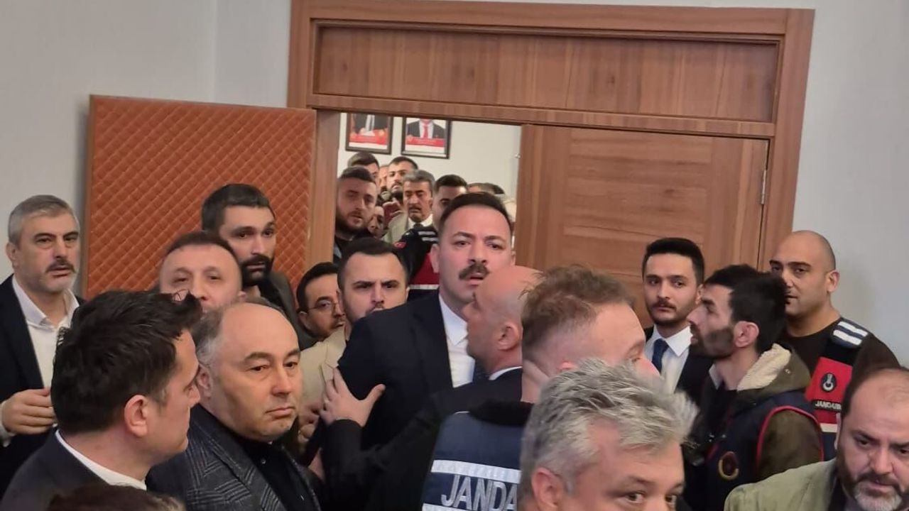 Zaman zaman AK Parti ve CHP'li üyeler arasında tartışma yaşandı. Salonda sesler yükselirken jandarma gerginliği yatıştırmak için müdahale etti. AK Parti'li meclis üyeleri seçimi kazandıklarını ilan edip salondan ayrıldı, CHP'liler ise başkanlık kürsüsüne çıkıp tepkilerini sürdürdü. (DHA)